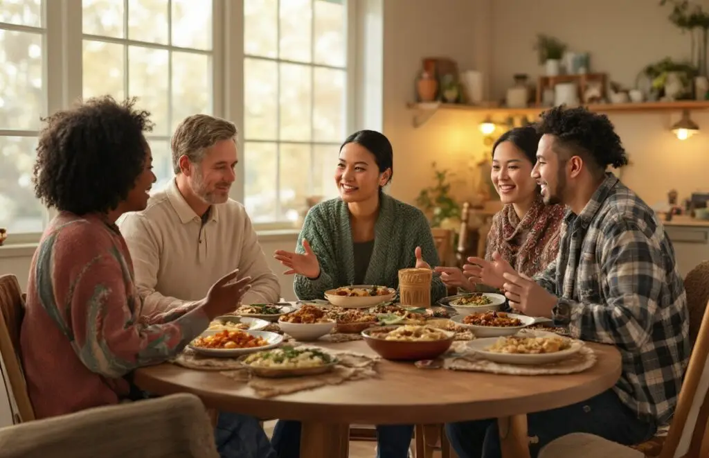Something magical happens when we eat together. Maria once brought homemade tamales to a neighborhood potluck. Her Korean neighbor, Mrs. Kim, hesitated at first, but one bite turned into a smile that needed no translation. Shared meals like that turn strangers into neighbors. The dinner table becomes neutral ground – where differences become curiosity, not division. Research shows that neighborhoods with regular communal meals experience higher trust and lower prejudice.